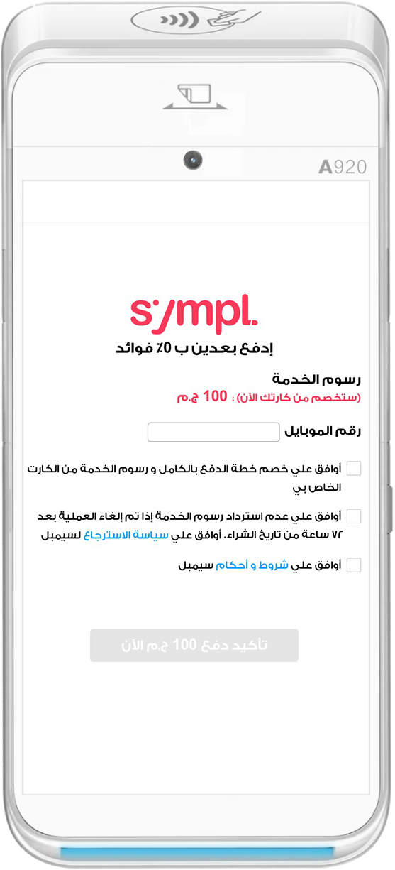 ادخل رقم موبايلك و ادفع رسوم الخدمة بكارتك البنكي